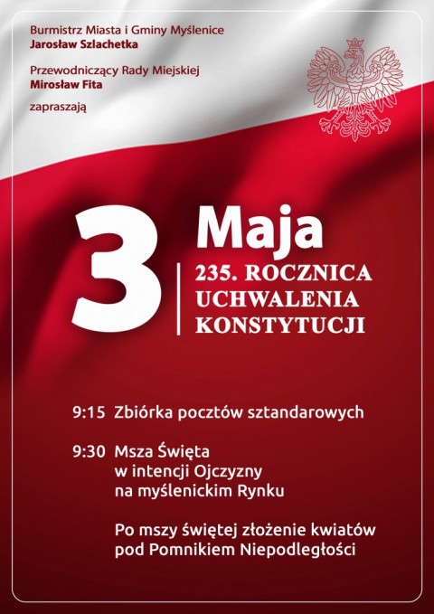 Program uroczystości 3 maja na Rynku w Myślenicach: